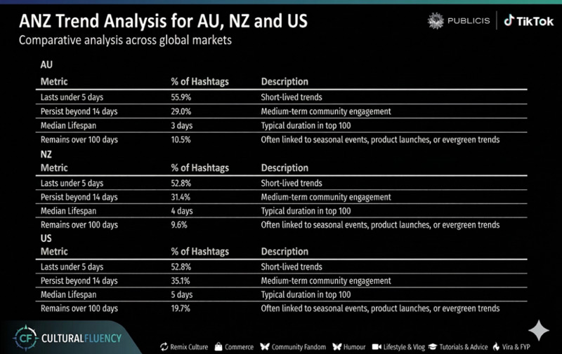 Data (e.g.8.0 days) provided by Publicis Groupe ANZ Cultural Fluency, derived from TikTok.